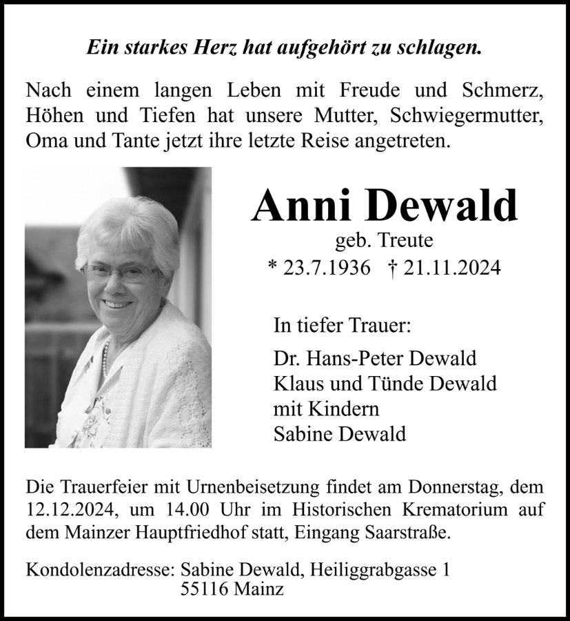 in dieser Zeit des Schmerzes wünschen wir Ihnen Kraft, den Verlust im Kreise Ihrer Liebsten zu verarbeiten. Als Zeichen unserer Anteilnahme und des Gedenkens entzünden wir dieses erste Licht. Möge diese Gedenkseite Ihnen helfen, Erinnerungen zu teilen und so das Andenken gemeinsam wachzuhalten.