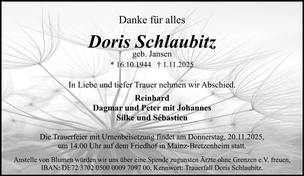 Doris Schlaubitzgestorben am 1. November 2025
